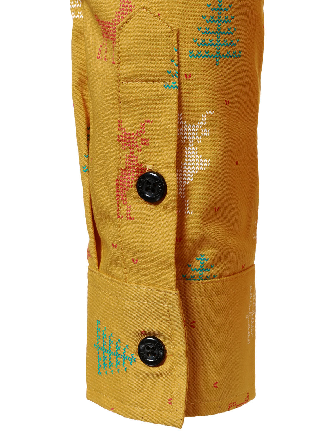 Wprowadź ciepły, pogodny styl do swojej zimowej garderoby dzięki Adrian | Świąteczny Złoty Akcent. Ta koszula łączy skandynawski, pikselowy motyw reniferów i choinek z nowoczesnym krojem, tworząc idealne połączenie świątecznego klimatu i męskiej elegancji. Doskonała na rodzinne spotkania, wigilijne kolacje czy świąteczne wyjścia z przyjaciółmi.