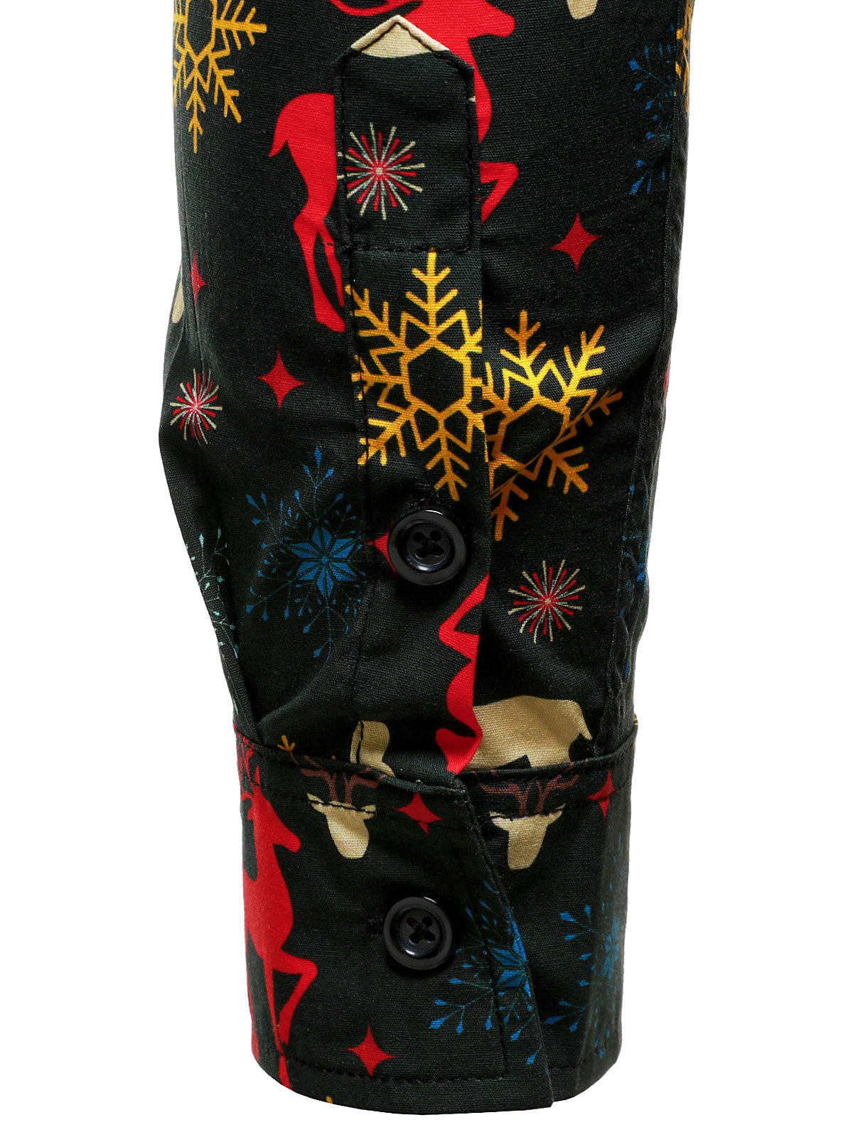 Wnieś elegancję połączoną ze świąteczną energią dzięki Evan | Świąteczny Klimat w Ciemnych Barwach. Ta koszula łączy w sobie ciemne, głębokie tło z kolorowymi reniferami i śnieżynkami, tworząc stylowy, nowoczesny i jednocześnie pełen radości świąteczny wygląd. Idealna na kolacje, rodzinne spotkania i zimowe imprezy.